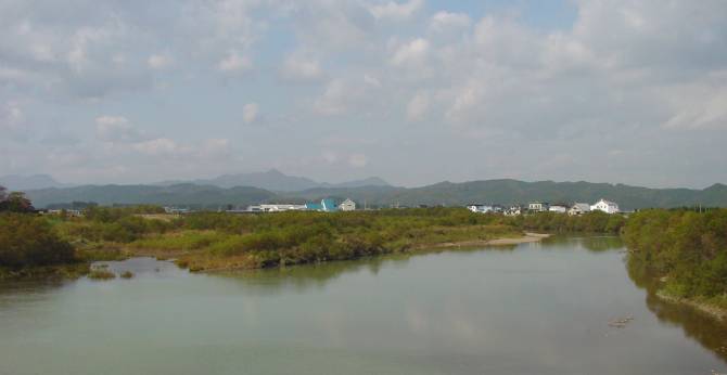 大橋の下流側、魚がいても釣りをする気がしない所。